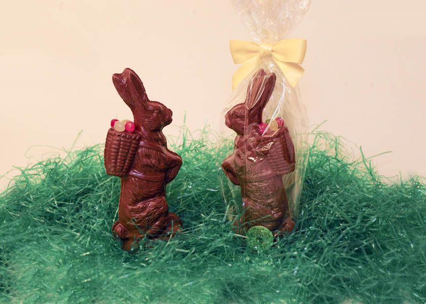 Standing 8.5 inches tall, this solid milk chocolate Easter Bunny weighs in at about one pound and comes decorated with assorted jelly beans!