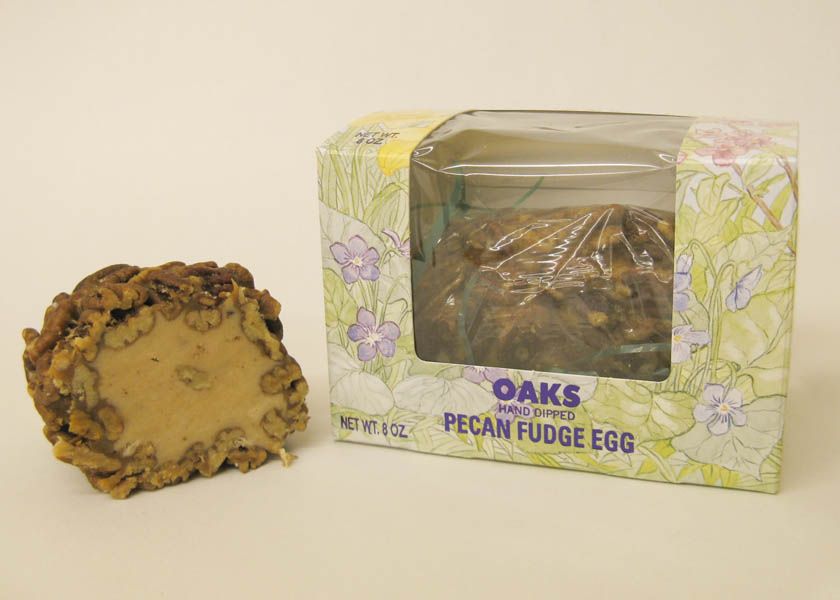 Made with Wisconsin's finest AA butter, whole milk, pecans, and the fines vanilla flavoring, our vanilla pecan fudge egg is dipped in delicious caramel, then rolled in pecans. An amazing combination!